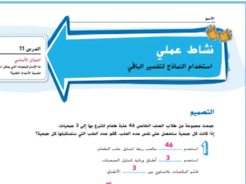 حل درس استخدام النماذج لتفسير الباقي للصف الخامس الفصل الاول