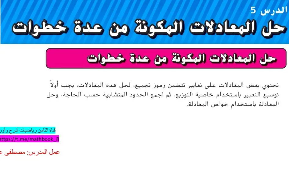 تحميل حل درس حل المعادلات المكونة من عدة خطوات للصف الثامن الفصل الاول