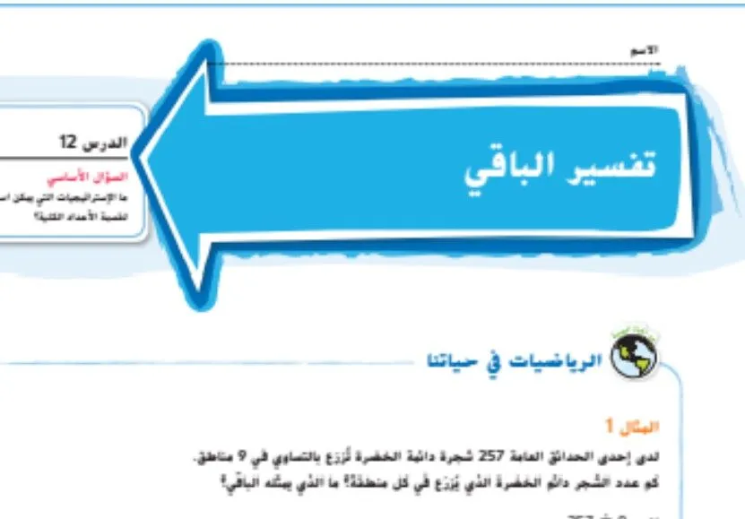 حل درس تفسير الباقي للصف الخامس الفصل الاول رياضيات تجدون رابط تحميله تحميل مباشر بصيغة PDF تحميل مباشر، على موقع امارات سكول. وفق منهاج وزارة التربية و التعليم في الإمارات العربية المتحدة الموسم الدراسي 2025-2026.