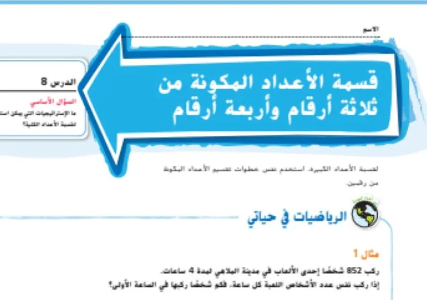 حل درس قسمة الاعداد المكونة من ثلاثة ارقام واربعة ارقام للصف الخامس