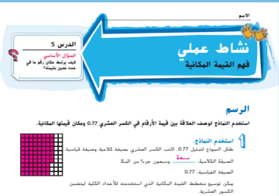حل درس فهم القيمة المكانية للصف الخامس الفصل الاول