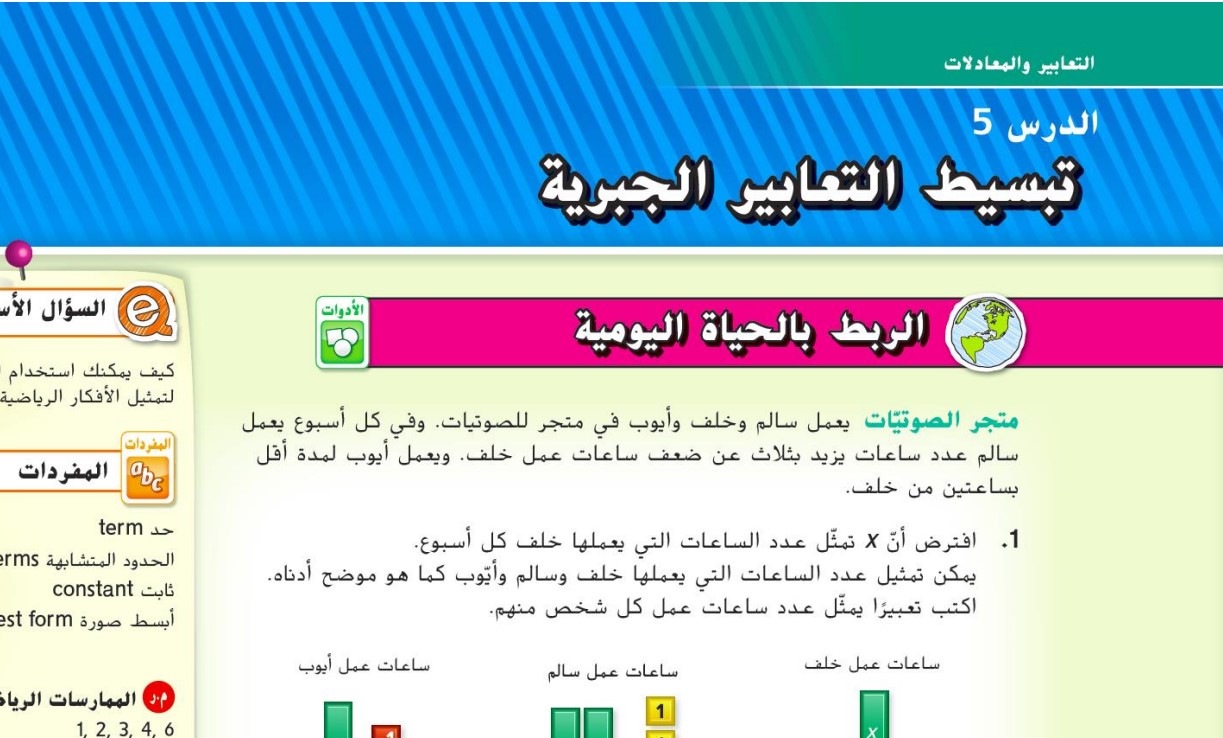 حل درس تبسيط التعابير الجبرية رياضيات تجدون رابط تحميله تحميل مباشر بصيغة PDF تحميل مباشر، على موقع امارات سكول. وفق منهاج وزارة التربية و التعليم في الإمارات العربية المتحدة الموسم الدراسي 2024-2025.