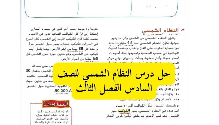 حل درس النظام الشمسي علوم صف سادس فصل ثالث