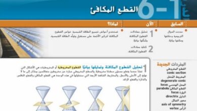 حل درس القطع المكافئ رياضيات للصف ثاني عشر عام فصل ثاني